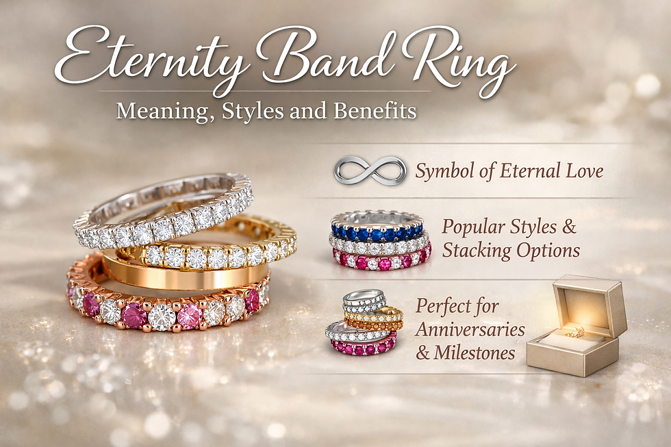 An eternity band is more than a beautiful circle of gemstones. It represents commitment without limits, love without conditions, and memories that continue to grow.